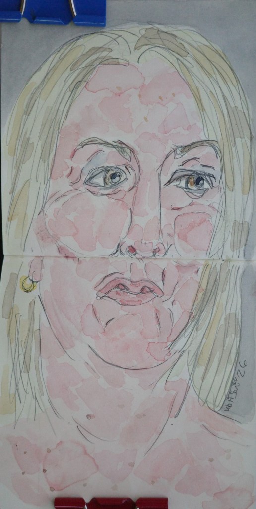 Premium Supreme (selfie) was done on Rembrandt 9×12 inch cold press/fine grain paper.