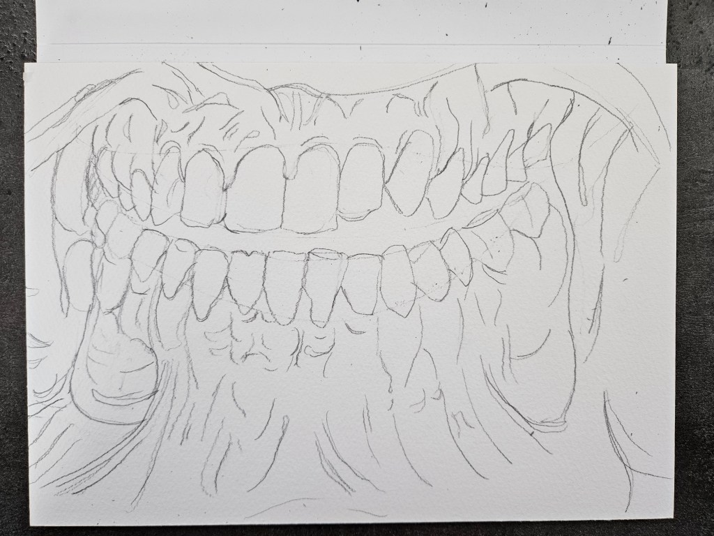 Terrible Beauty is 7×10 watercolor on French cotton paper.