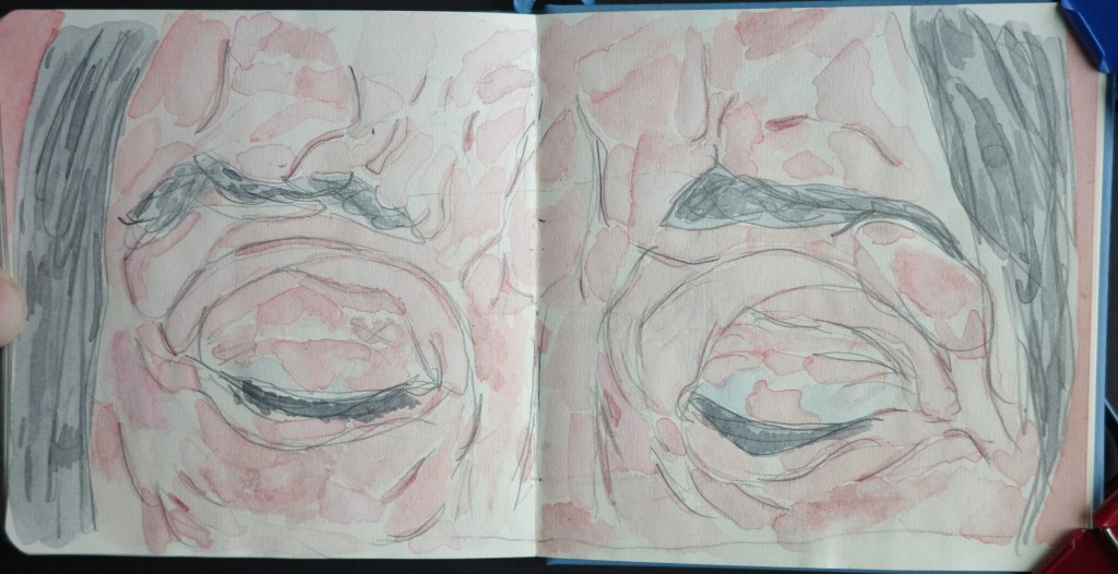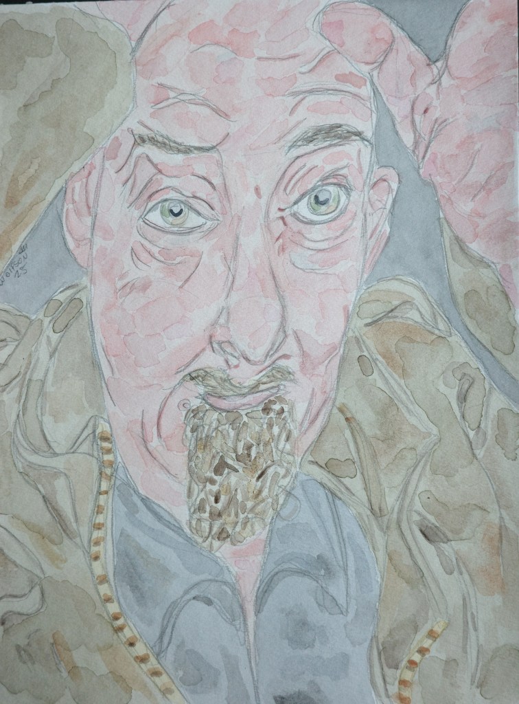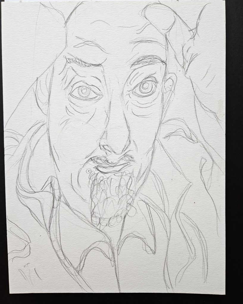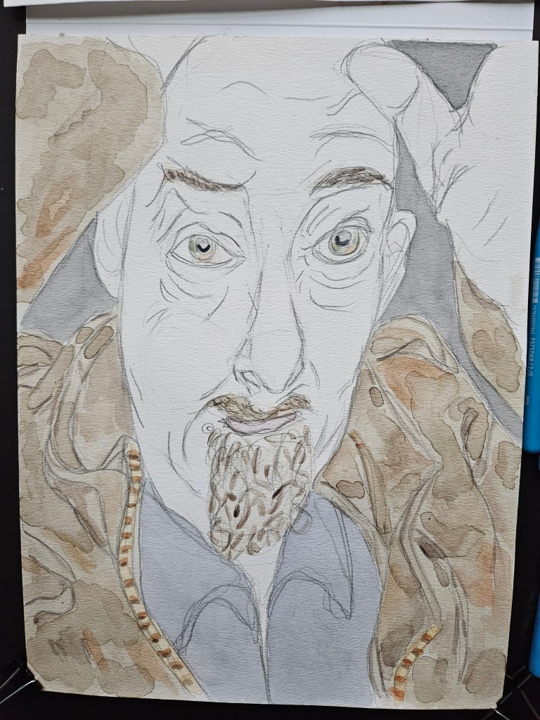 Premium Supreme (selfie) was done on Rembrandt 9×12 inch cold press/fine grain paper.