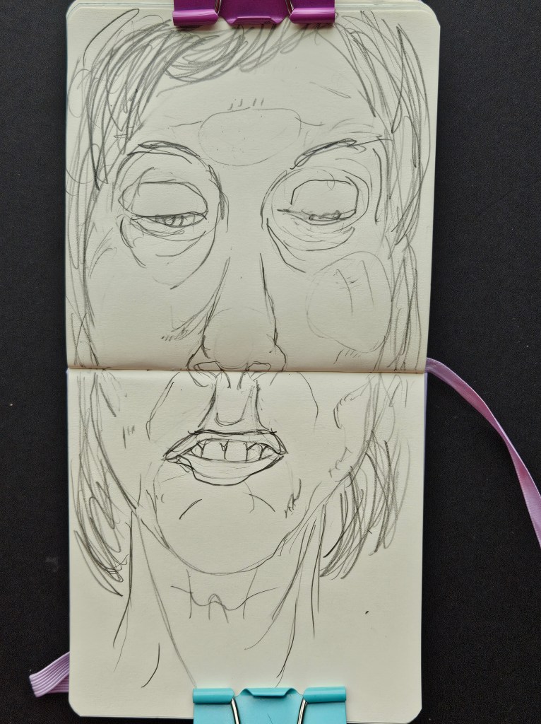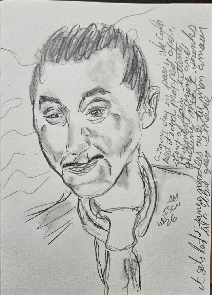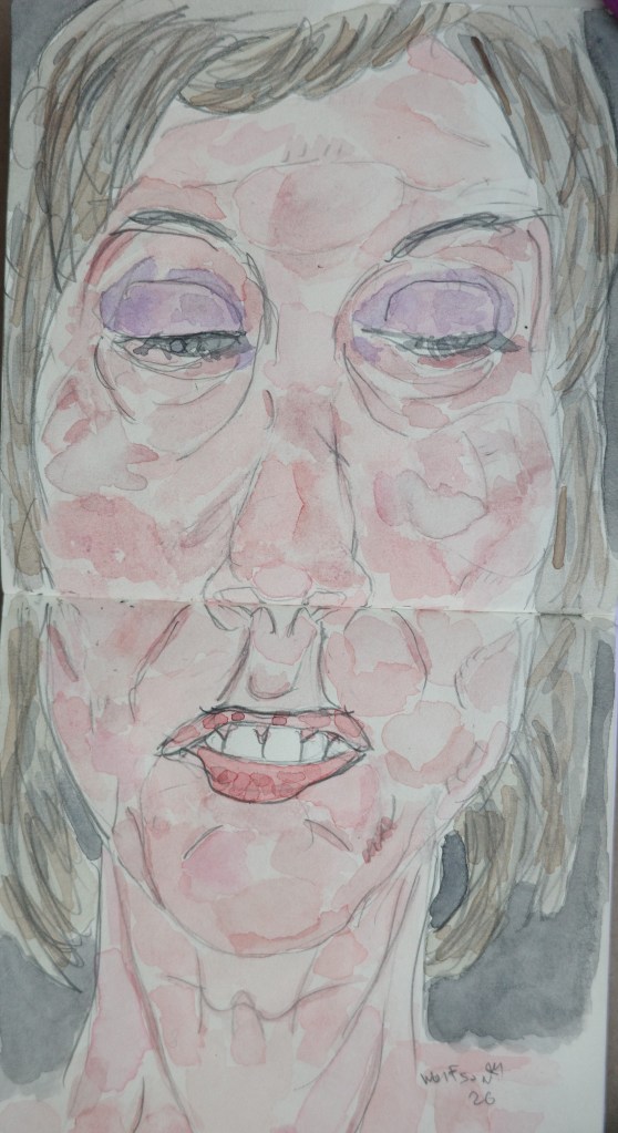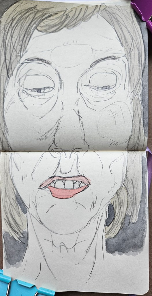 Bonus: quick sketch & journal entry over morning coffee 5×5 inches.