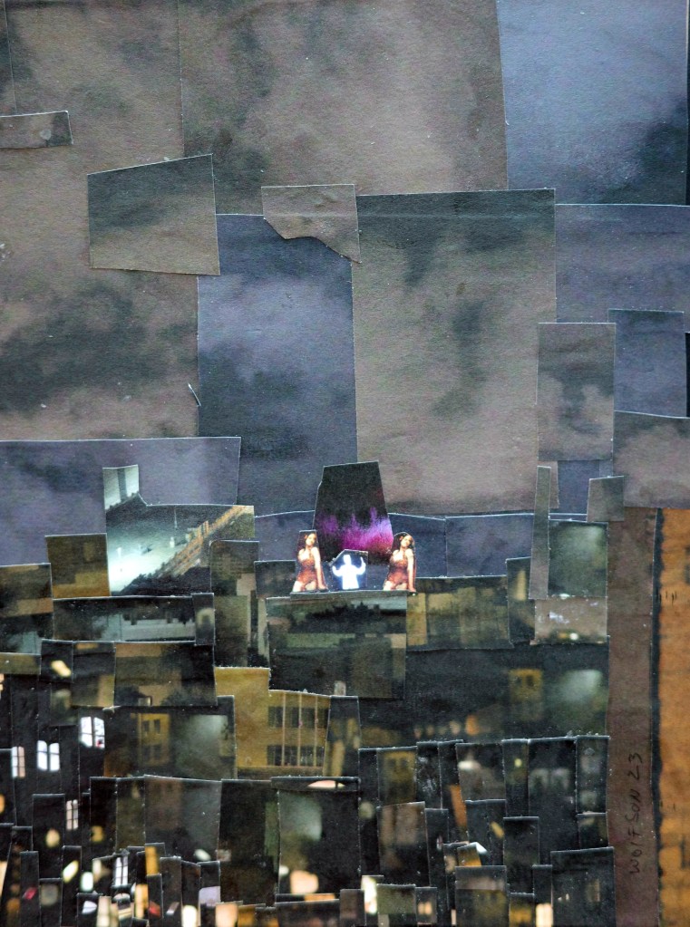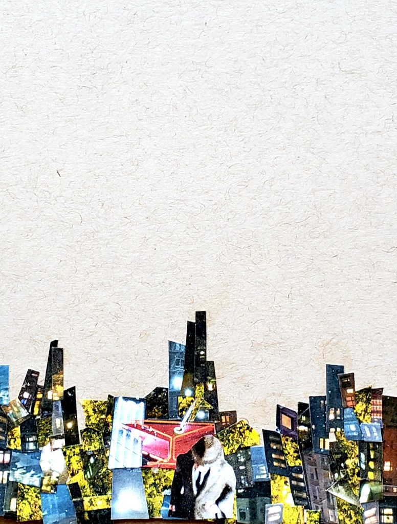 The entire piece is from a single photo which I personally took and then printed up many times. I used my trusty pair of (tiny) scissors to cut out the pieces and then glued them to 11×17 piece of paper using adhesive and small brush.