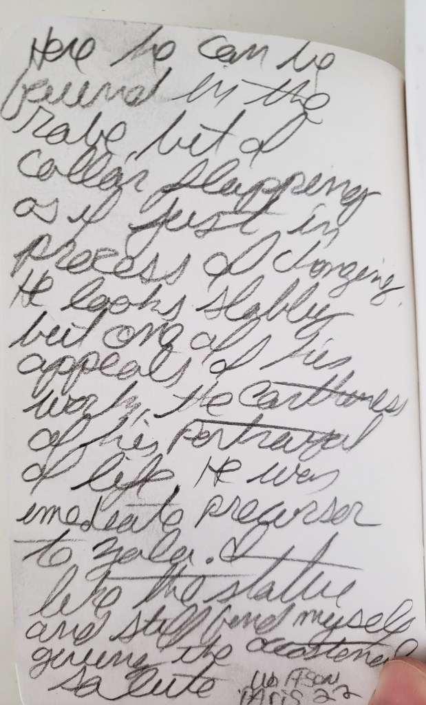 Being a demi Parisian, I know that I have had my time in being on the menu for the night’s programming. There he is, in bed pen dancing pirouettes upon the paper, book in hand he never falls asleep reading but snaps light off at proper end of chapter. Two corners of the bedsheets in hand, he is snapping them in the air with the flourish of a bullfighter before allowing them to float back down upon the mattress.