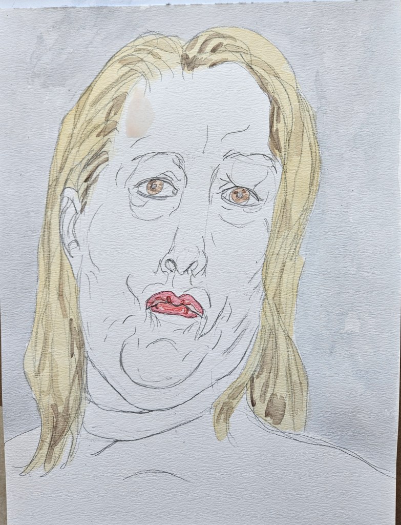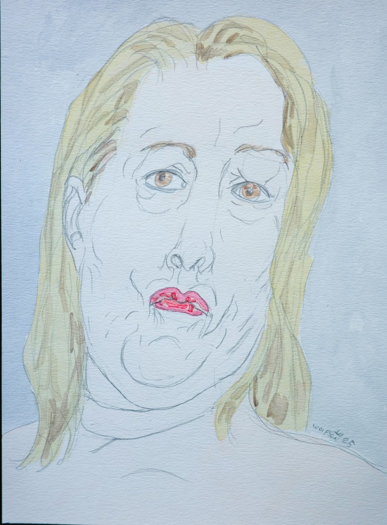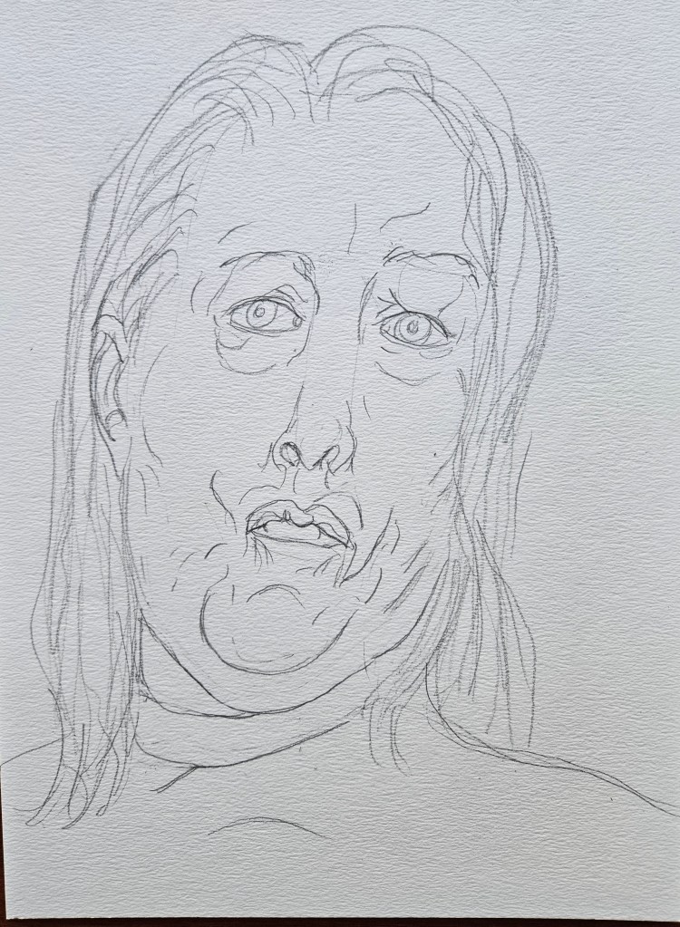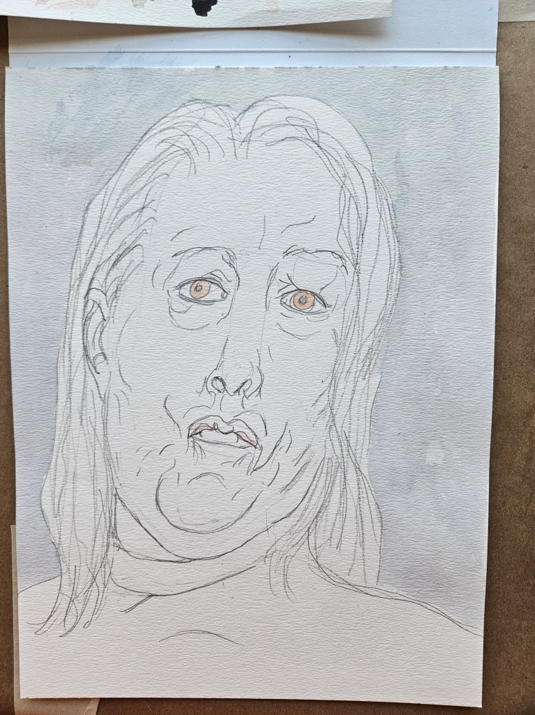 Premium Supreme (selfie) was done on Rembrandt 9×12 inch cold press/fine grain paper.