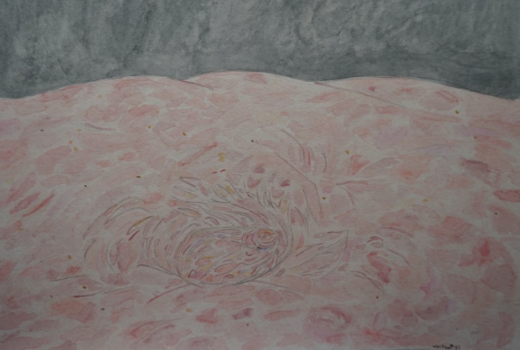 I have started another painting. This one is on French cotton paper. Between rain and general dampness in the air, the weather has not been obliging me. I have had to takes days off.